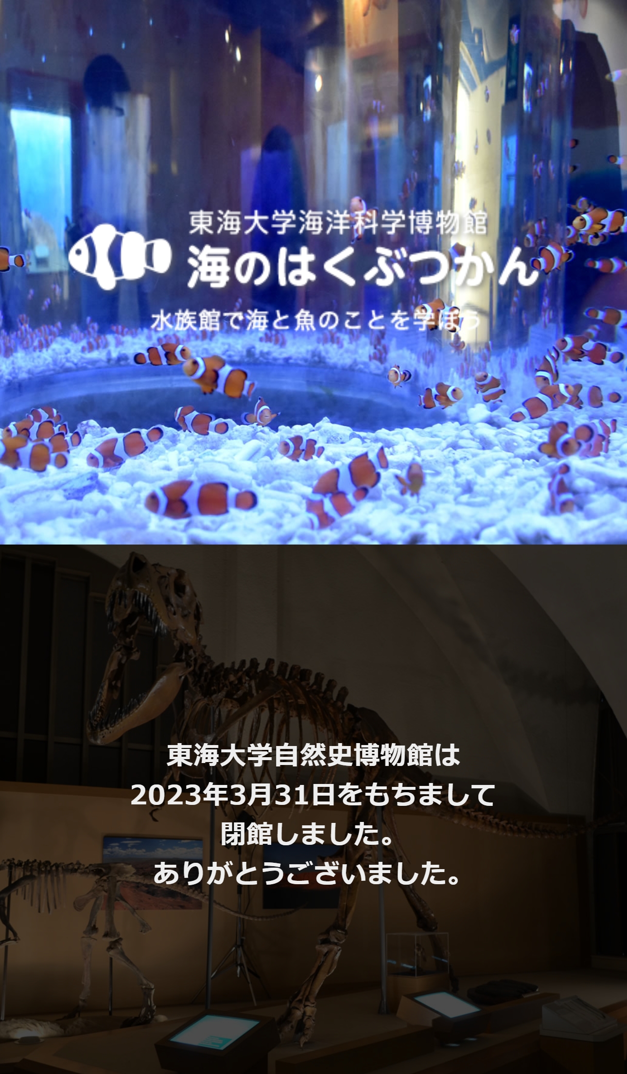 1970年開館以来、永らくご愛顧いただいてきました海洋科学博物館ですが、2024年10月末日をもちまして、本館の一般公開を終了しました。これまでご来館いただきました皆さまには深く御礼申し上げます。今後は教育・研究に特化した海洋生物に関する新たな活動を続けてまいります。東海大学海洋科学博物館 職員一同